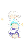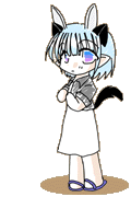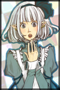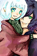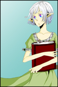 容姿:白銀のオカッパ頭、虹色の瞳、小柄、ピアス6つ